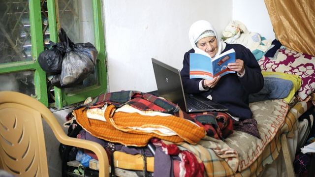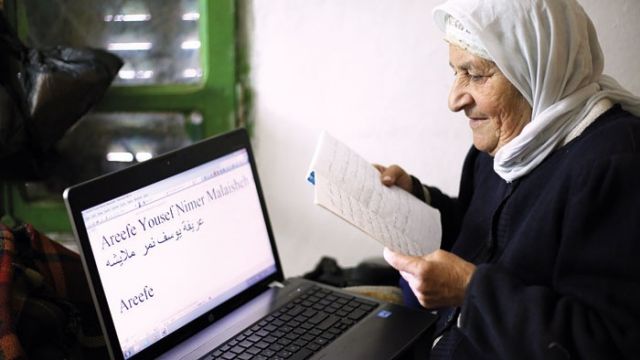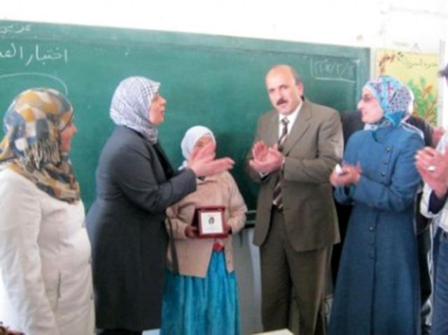 الحاجة عريفة ملايشة (75 عاماً)، من سكان قرية جبع قضاء جنين في الضفة الغربية، التي التقيناها في منزلها المؤلف من غرفة واحدة، والذي يفتقر الى أدنى وسائل العيش، وحدّثتنا عن سبب عودتها الى المدرسة رغم تقدّمها في السن، فقالت: «كانت أمي مريضة واضطررت الى البقاء بجانبها للاهتمام بها ورعايتها، لذا تركت المدرسة وأنا في سن صغيرة، وأصبحت أمية لا أجيد القراءة ولا الكتابة. بقيت على هذه الحال الى أن توفيت أمي، وكنت أحزن على نفسي عندما أعجز عن قراءة اسم أي محل تجاري، أو مضمون ورقة كُتبت حروفها باللغة العربية».