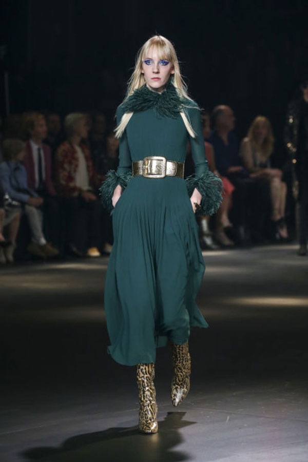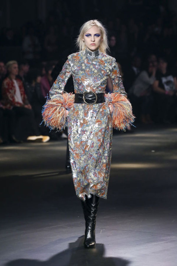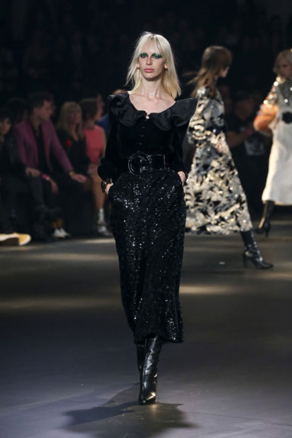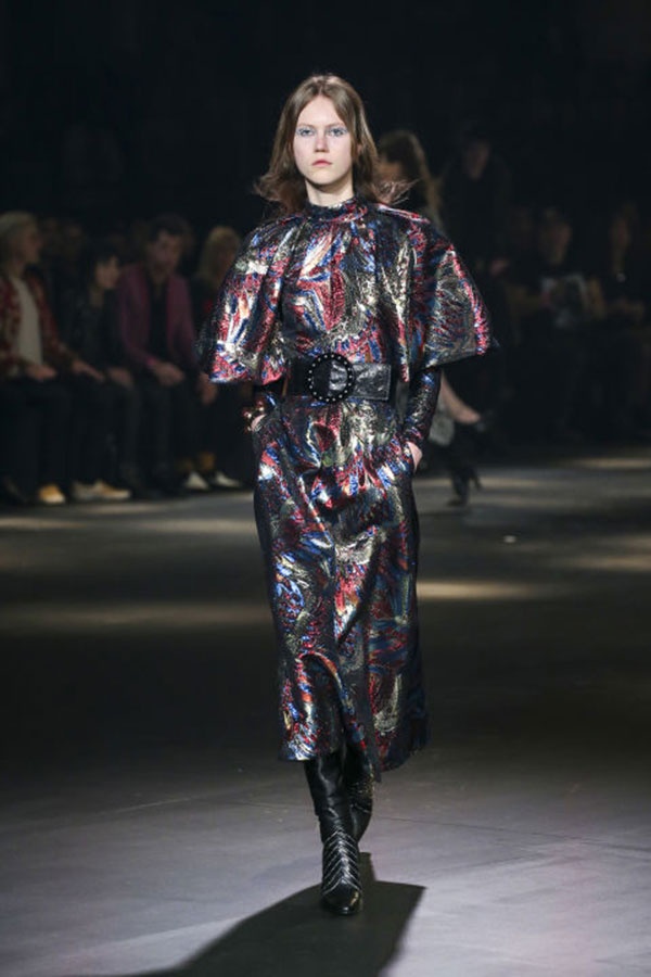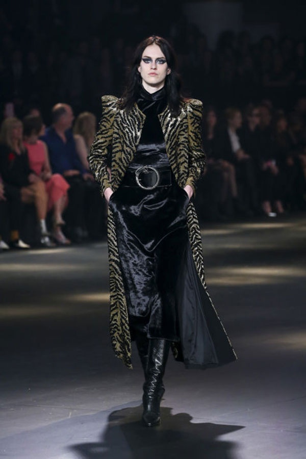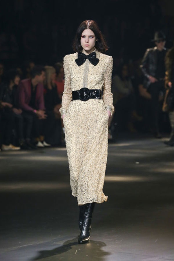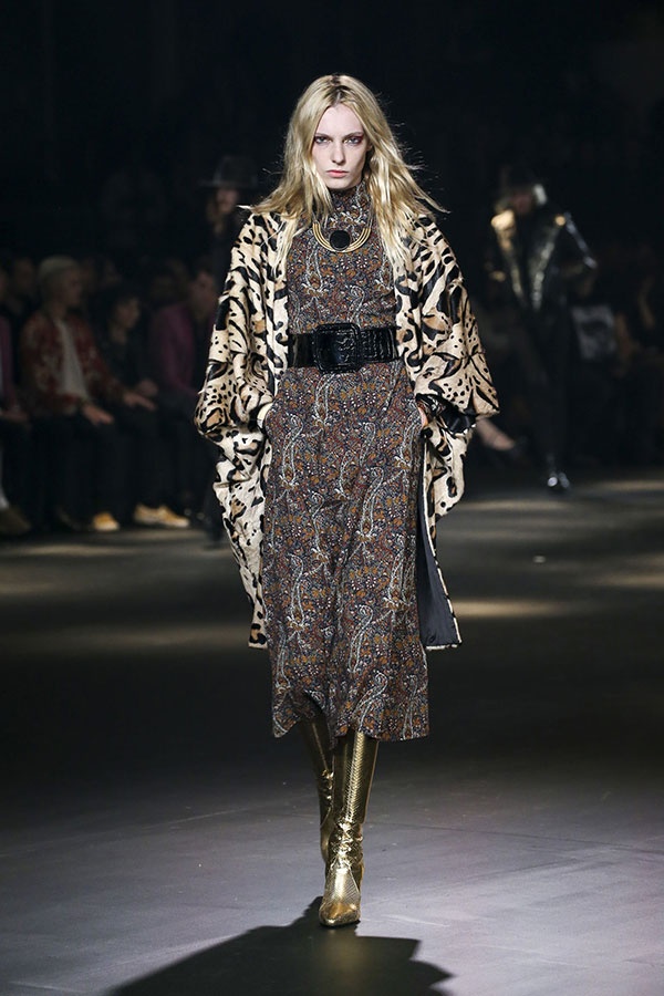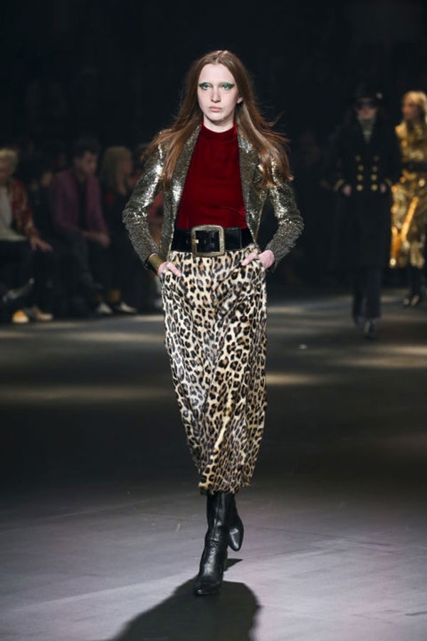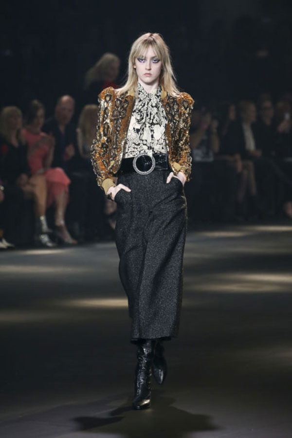 وتضمنت هذه المجموعة الإستثنائية إعادة إحياء هوية هذه العلامة، فبرزت التصاميم بالأقمشة البراقة والمطبعة بالنوتات الموسيقية وأخرى بالطبعات الحيوانية والتنانير المتوسطة الطول والأحزمة العريضة، كما تخلل العرض رؤية متجددة لسترة Saint Laurent الجلدية.