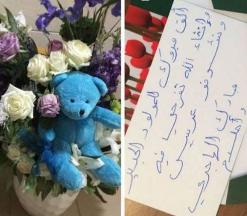 نشرت ملكة المسرح ميريام فارس صورة لهدية الملكة أحلام لابنها جايدن. والهدية عبارة عن باقة من الورود مرفقة برسالة معبّرة جاء فيها: "ألف مبروك للمولود الجديد وانشاء الله تفرحي فيه وتشوفو عريس... مبارك الهاجري وأحلام". فردّت ميريام قائلة: "الله يخليكن لبعض ويخليلكن هل عايلة الحلوة". ويذكر أنّها ليست الرسالة الأولى التي توجّهها احلام إلى فارس بعد ولادتها، إذ سبق وأن باركت لها وكتبت لها حينها: "يا ام جيدن الف الف مبروك ويا رب تشوفيه رجال ويبرك اختي ميريام فارس مبروك المولود يتربى في عزكم". لترد عليها ميريام: "حبيبتي احلام الشمسي شكراً لإلك ولمبارك على أمنياتكم والورود الجميلة والله يخليلكن عايلتكن"