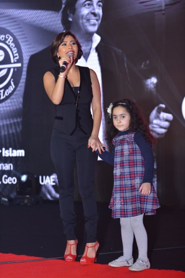بالصور- شيرين عبد الوهاب تتألق بالأسود والأحمر وتقدم هدايا للأطفال