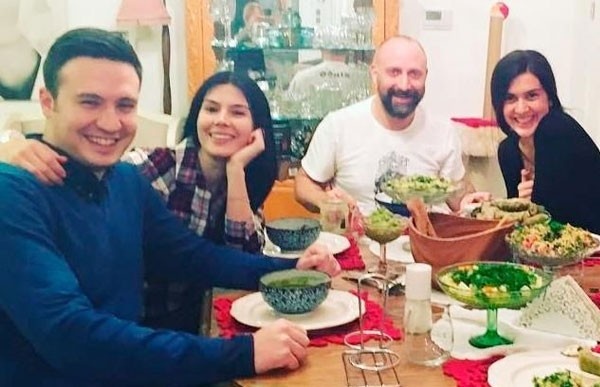 ودعا الثنائي بعض أصدقائهما من داخل الوسط الفني إلى العشاء بمنزلهما، وأبرزهم الممثلة خديجة شندل الشهيرة بـ"ديلا هانم" وعريسها بوراك ساياشار، والسيناريست سيما إيرغينيكون وزوجها أور أصلان.
