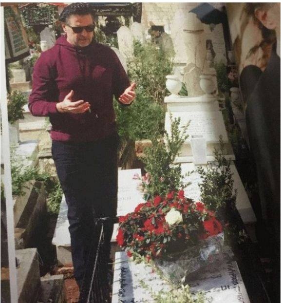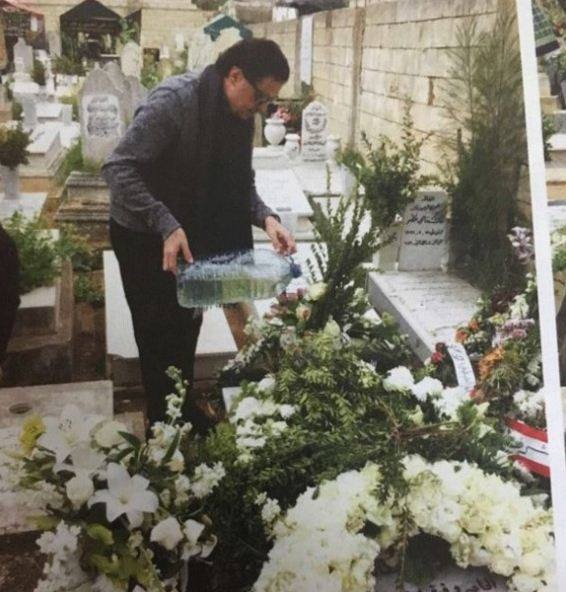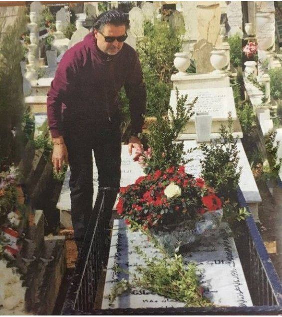 بالصور- راغب علامة يقرأ الفاتحة أمام قبر والدته... شاهدوا كيف يسقي الزهور