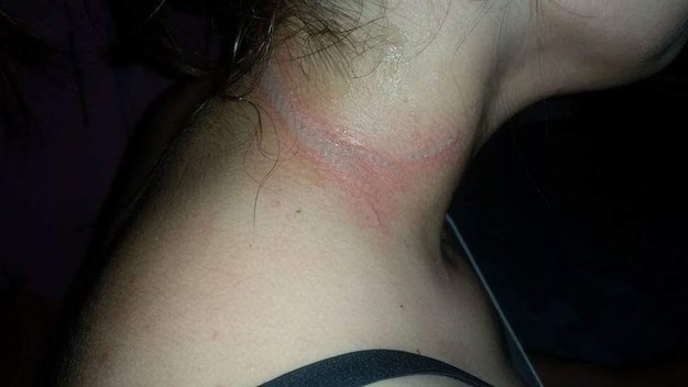 وأشارت الى ان ابنتها عانت من حرق من الدرجة الثانية والآن أصبح هناك ندبة حول عنقها.