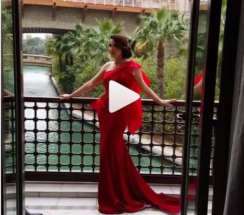 وشاركت نسرين جمهورها عبر حسابها على تطبيق "انستغرام"، مقطع الفيديو الذي صوّر في فندق "القصر"، فأطّلت بفستان أحمر من تصميم منال عجاج، كما بدت بتسريحة شعر مختلفة تناسقت مع الفستان المزود بكتف واحد، فما شعرها على نفس الجهة.