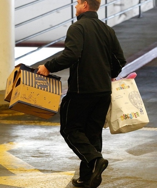 وظهر كاني معها ممسكاً ابنتهما الصغيرة، التي دخلت معهما الى المتجر واختارت الكثير من الالعاب.
