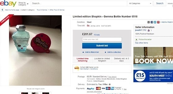 وأكدت الصحيفة أن الوالدة جيسيكا ديفيد ساعدت طفلتها لاقتناص الفرصة، لتباع اللعبة على الموقع بمبلغ 201.67 جنيه إسترليني، وجاء ذلك بعد بحث الأم عن لعبة مشابهة للعبة طفلتها على الموقع والتي وجدت مثيلتها تباع بمبلغ 500 دولار فقررت طرحها للبيع، وحصل جامع للعب من تكساس على اللعبة.