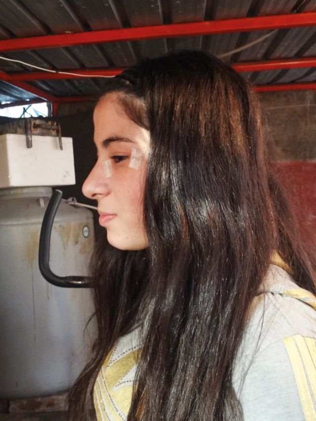 في عطلة نهاية العام الماضي، قصدت مريم صديقتها جنى وصعدتا كعادتهما إلى السطح لمتابعة دروسهما. تقول جنى: «صعدنا الى السطح لندرس كعادتنا، وفجأة سمعنا دويّ مفرقعات بشكل كثيف، فعرفنا أن جيراننا يحتفلون بزفاف ابنهم. لم نقف ولم نطل من الشرفة، وبقينا جالستين في مكاننا، إلا أن صوت المفرقعات بدأ يزداد شيئاً فشيئاً، وشعرنا كأن حرباً تدور في الشارع. لم نخف ولم نهرب ظناً منا أن ألواح الألمنيوم المسقوفة والستائر السميكة التي تسوّر السطح ستحمينا من أي شيء. وإذ بكتلة من النيران تُباغتنا، فشعرت بأن ظهري يحترق، فهربت وتبعتني مريم ولاحظت أن وجهها مغطى بالدماء. ولما وصلنا إلى البيت، فوجئت والدتي بحالنا وسألتنا عما حصل، فقالت مريم إن المفرقعات قد ارتطمت بفمها، وأخبرتها أنا بأن رأسي وظهري يحترقان، فسارعت الى إسعافنا، ولكن عندما رأت الدماء تسيل من جسدينا، خافت وبدأت تصرخ للجيران طلباً للمساعدة، لأن والدي لم يكن في المنزل ليقلّنا إلى المستشفى».