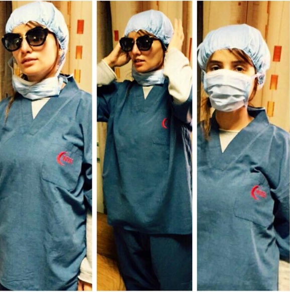 وشاركت الممثلة المصرية جمهورها عبر حسابها على تطبيق "انستغرام" صوراً من داخل المستشفى، مرتديةً ملابس التمريض الكاملة.