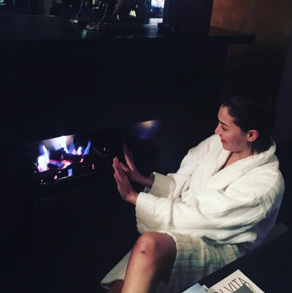وشاركت الممثلة المصريّة جمهورها عبر تطبيق "انستغرام" صورة من مكان إقامتها في لندن أمام المدفأة، ومرتديةً "روب الحمام".