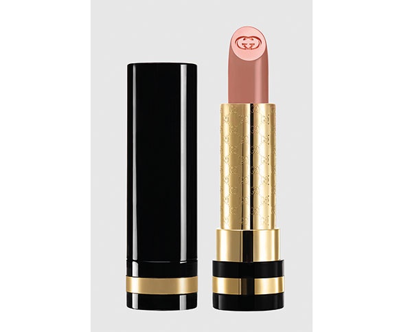 حدّدي شفتيك ولوّنيهما بقلم حيادي اللون Chanel Le Crayon Levres Precision Lip Definer in Natural no.34، ثم غلّفيهما بأحمر الشفاه الوردي الحياديّ Gucci Luxurious Moisture Rich Lipstick in Carnation no.305. بعدها، ضعي منديلاً ورقياً على شفتيك لإزالة اللمعان والحصول على لون مطفأ.