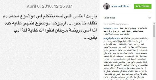 وعبّرت الممثلة المصرية عن غضبها البالغ بسبب الأخذ والرد فيما يتعلق بموضوع الطلاق، كاتبةً عبر حساباتها على شبكات التواصل الإجتماعي: "ياريت الناس اللي لسة بتتكلم في موضوع محمد ده تقفله خالص…. ارجوكم الموضوع انتهي كفايه كده انا امي مريضة سرطان اتقوا الله كفاية قلة ادب بقى".