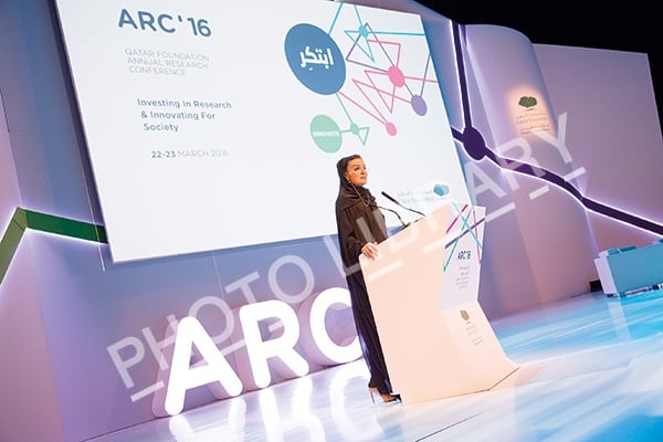 افتتحت الشيخة موزا بنت ناصر، رئيس مجلس إدارة مؤسسة قطر للتربية والعلوم وتنمية المجتمع، أعمال مؤتمر مؤسسة قطر السنوي للبحوث 2016، في مركز قطر الوطني للمؤتمرات تحت شعار «الاستثمار في البحوث والابتكار من أجل المجتمع» بمشاركة مجموعة من أبرز الخبراء في مجالات التطوير والبحث العلمي. وحضرت افتتاح المؤتمر الشيخة هند بنت حمد آل ثاني، الرئيس التنفيذي ونائب رئيس مجلس إدارة مؤسسة قطر، وعدد من الوزراء، إلى جانب كبار المسؤولين وأكثر من 2000 مشارك من العالم.
