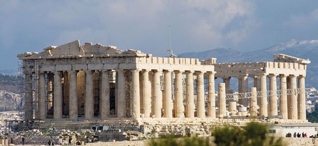 في القرن الثامن قبل الميلاد، تحوّل الأكروبوليس إلى معبد، وبعدما انتصر اليونانيون على الفرس، وضعوا خططًا عمرانية لدولتهم تحت قيادة بيركلس، فبنت مجموعة استثنائية من المهندسين المعماريين والنحاتين المعابد الأربعة التي يضمها، لتتحول تلة صخرية إلى مجمع فريد من نوعه، شهد على ظهور الفكر اليوناني الكلاسيكي. هنا على هذه الرابية ولدت الديمقراطية مفهومًا وممارسة سياسية... والفلسفة، والمسرح، وحرية التعبير والرأي، لتبقى بنات أفكار الإغريق الأساس الفكري والروحي للعالم المعاصر وقيمه. اختلف مفهوم الديمقراطية الذي انبثق من أثينا قبل آلاف السنين، ولكن بقيت الكلمة، فلكل شعب ديمقراطيته.