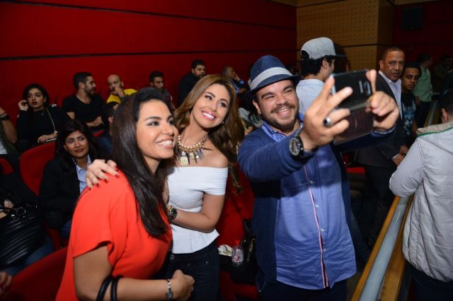 وحضر من نجوم الفيلم مى سليم، نسرين أمين، والممثل أوس أوس، والذي ظهر للجمهور للمرة الأولى بدون شعره الطويل الذي اشتهر به في عروض "مسرح مصر"، كما حضر الفنان أشرف عبد الباقي لتهنئة أسرة العمل.