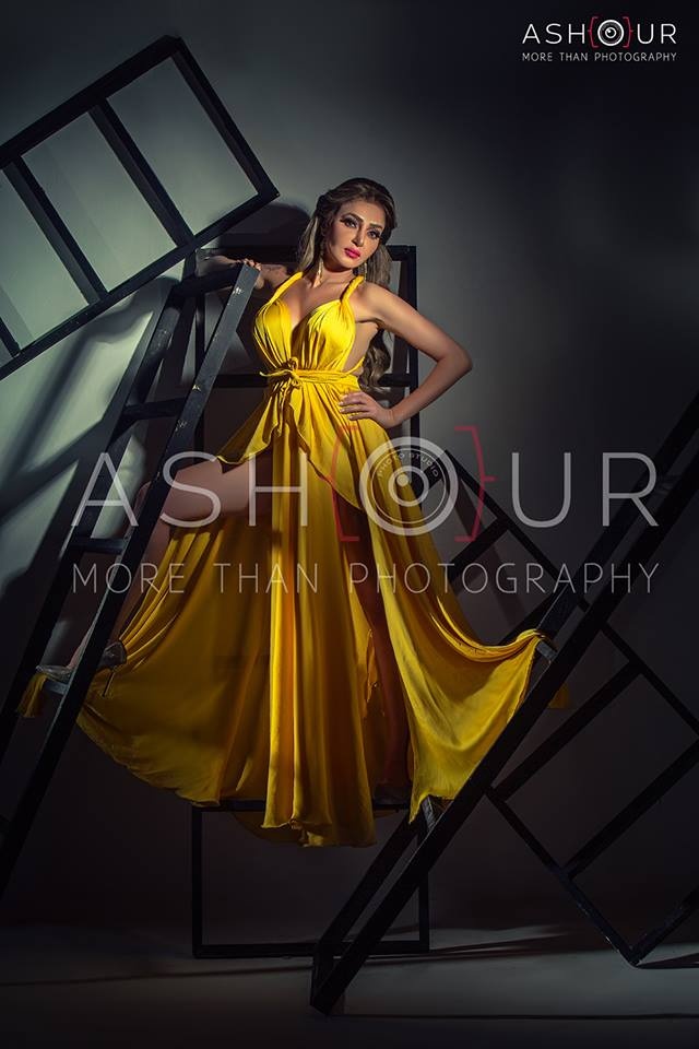 وشارك المصور المصري صور إلهام الشهير بـ"إلي" عبر حسابه الرسمي على موقع التواصل الإجتماعي "فيسبوك"، حيث أطلب بفستان أصفر صارخ، بفتحات عن الجانبين، وبدانتيل على الكتفين.