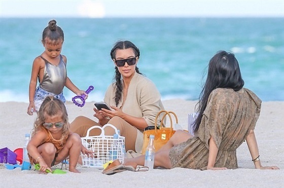 واصطحبت كيم وكورتني طفلتيهما إلى شاطئ البحر في ميامي للاستمتاع بوقتهما قليلاً صباح أمس الجمعة.