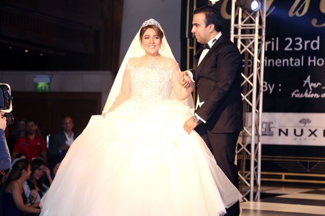 وكانت مفاجأة الحفل النجمة مي كساب التي ارتدت فستان زفاف من تصميم عمرو، وأشادت مي بتصميمات عمرو والذي قام بتصميم فستاني زفافها وقالت إنها تركت له مطلق الحرية في تصميمها لثقتها الشديدة فيه ولم تر الفستانين إلا في حفل زفافها.