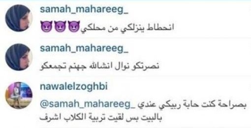 تفاجأت نوال بتعليقات على صورتها من إحدى متابعيها التي أهانتها ووجهت لها كلمات قاسية، وكتبت في تعليق "نصرتكو نوال انشالله جهنم تجمعكو".