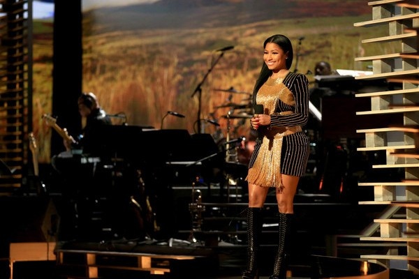ظهرت الفنانة مايا دياب خلال برنامج "إسأل العرب" بفستان باللونين الذهبي والأسود من Balmain كانت قد ارتدته قبلها Nicki Minaj مع جزمة عالية تبلغ الركبة. من الأجمل برأيك؟