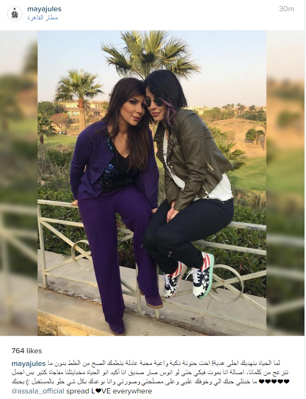 ونشرت مايا صورة جمعتها بالمطربة السورية عبر حسابها على تطبيق "انستغرام" منذ قليل، وأرفقتها بتعليق جاء فيه: "لما الحياة بتهديك احلى هدية! اخت حنونة ذكية واعية محبة عادلة بتعلمك الصح من الغلط بدون ما تنزعج من كلماتا".