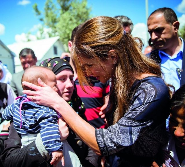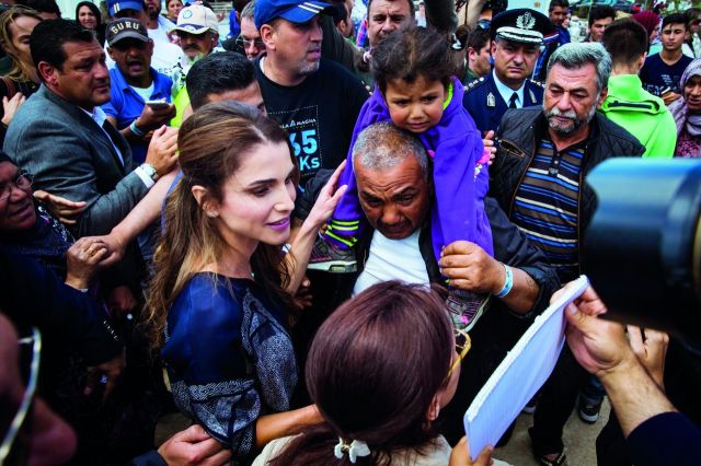 الملكة رانيا تزور مخيماً للاجئين في اليونان