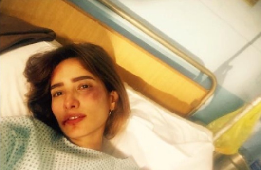 نشرت الفنّانة زينة صوراً لها خلال رقودها على سرير المستشفى، واثار الضرب المبرح باديةً عليها.