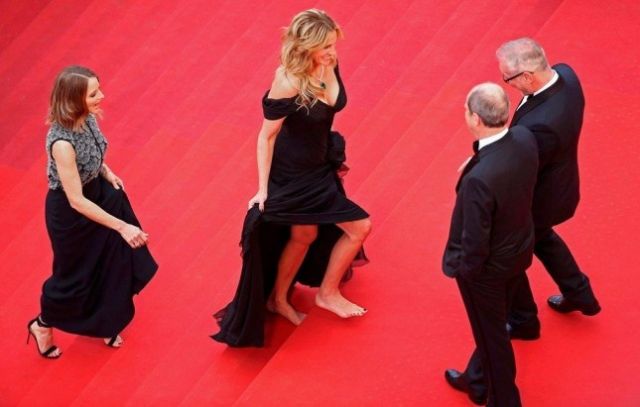 جوليا روبرتس تمشي حافية القدمين على سجادة كان الحمراء!! شاهدوا صدمة الحاضرين