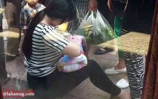 عُثر على رضيعة تصرخ من الجوع داخل صندوق من الكارتون ملقاة في الشارع، فسارعت إمرأة تمر بالمكان إلى إرضاعها أمام المارين.