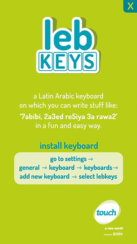 تطبيق مجاني لنظاميّ الأندوريد والآبل، وهو عبارة عن لوحة مفاتيح لاتينية وعربية حيث يمكنك كتابة كل الرسائل اللاتينية العربية (مثل 7abibi، و7ayete، و2a3ed re5iya 3a rawa2)، بطريقة سهلة ومرحة. يكفي تحميل التطبيق فتصبح لوحة المفاتيح جزءاً من لوحة المفاتيح الأصلية ويمكن استعمالها في كل التطبيقات ( واتساب، بريد الكتروني، فايسبوك، تويتر...).