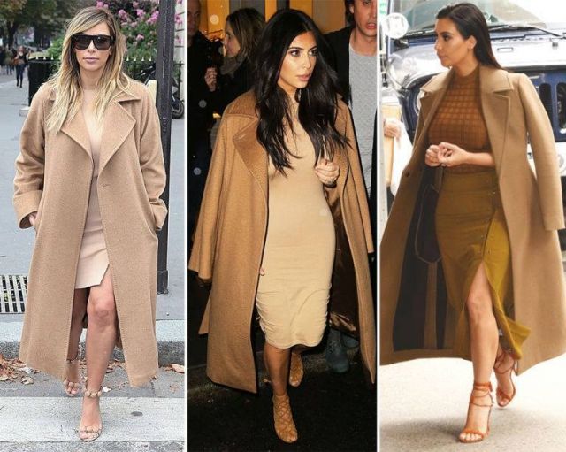 - معطف بلون الـCamel مع فستان من اللون نفسه.