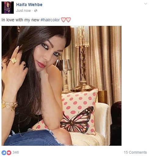تشارك الفنانة اللبنانية هيفاء وهبي معجبيها يومياً بشتّى نشاطاتها، ونشرت اليوم صورة عبر صفحتها الرسميّة على فايسبوك.