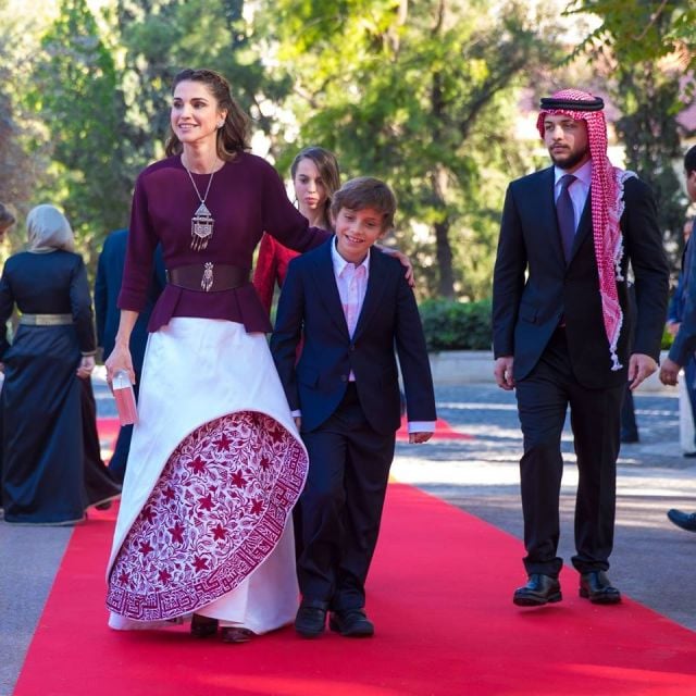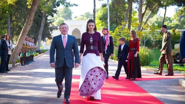 وجمعت الملكة رانيا العبدالله في أزيائها بين الطابع الشرقيّ والكتابة العربية على تنّورتها من جهة، والأناقة العتيدة التي تتمتّع بها من جهة أخرى.