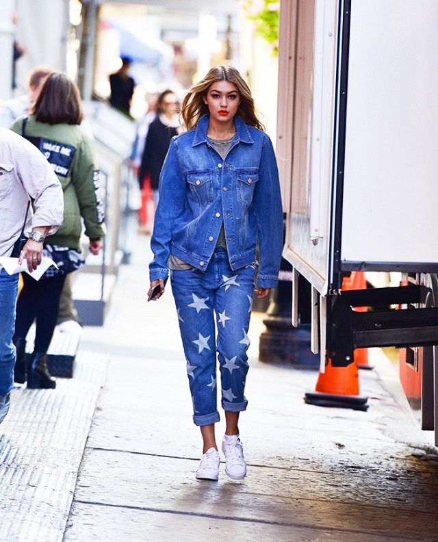 يبقى الدنيم بأساليبه المتعددة والمتنوعة على شكل فساتين، تنانير، سراويل وحتى معاطف خيار النجمات الأول ومن القطع الأساسية التي لا غنى عنها. لذا ظهرت بالدنيم أو الجينز العديد من النجمات كنجوى كرم ونانسي عجرم ويارا بشكله التقليدي ولكن بقصاتٍ عصرية ومميزة، لنشهده مرقعاً بالورود ومطبعاً بالنجوم لدى فلورنس ويلش Florence Welch ولدى عارضة الأزياء جيجي حديد Gigi Hadid وفي سترةٍ نسقتها الممثلة نادين الراسي مع التنورة الطويلة ولدى كندل جينر Kendall Jenner مع سروال من الترتر الأسود لظهور أنيق وملفت.