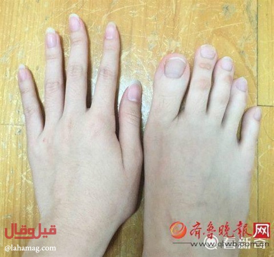 وذكر موقع "شنغهايست" أن الفتاة طولها 151 سنتيمتراً فقط، لكن أصابع قدميها طويلة جدًا، وتبدو غير متناسقة، وتشبه أصابع يديها إلى حد كبير.