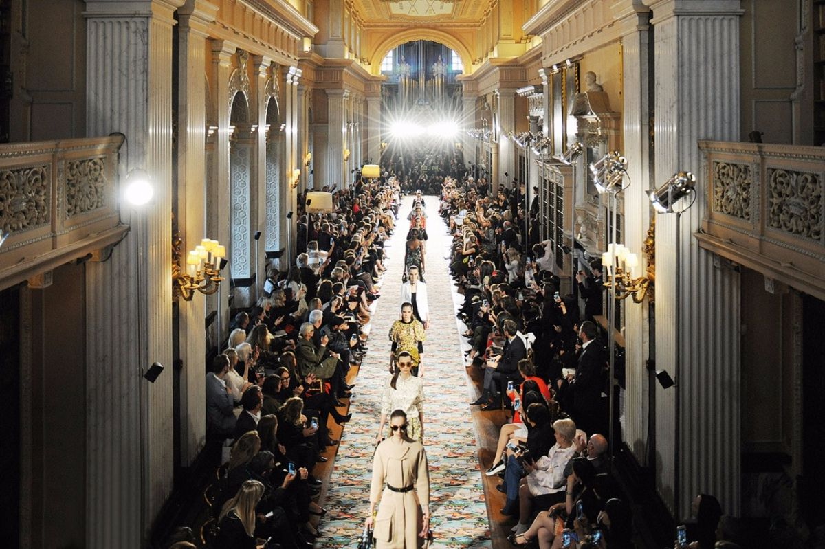 فساتين ساحرة عبرنا بينها وبين أجمل نساء العالم، مثل العارضة والممثلة التشيكية إيفا هرزيغوفا، وأكثرهن أناقة مثل العارضة البريطانية ألكسا تشانغ. ثم دخلنا الممرات العريقة حيث اختالت أمامنا العارضات بين المرايا الضخمة والكتب التاريخية الملوّنة بألوان الحياة والحاملة أسرارها. رأينا الكثير في وقت قصير، التويد والمخمل والحرير وأقمشة الجاكار المكسّرة، وموتيفات إفريقية وأخرى آسيوية، وتطريزات منثورة هنا وهناك أو مركّزة حيث لا يُمكن توقعها، ولاحظنا استحضاراً قوياً لرياضة ركوب الخيل، لعلّها تحية فرنسية إلى رياضة بريطانية أصيلة.