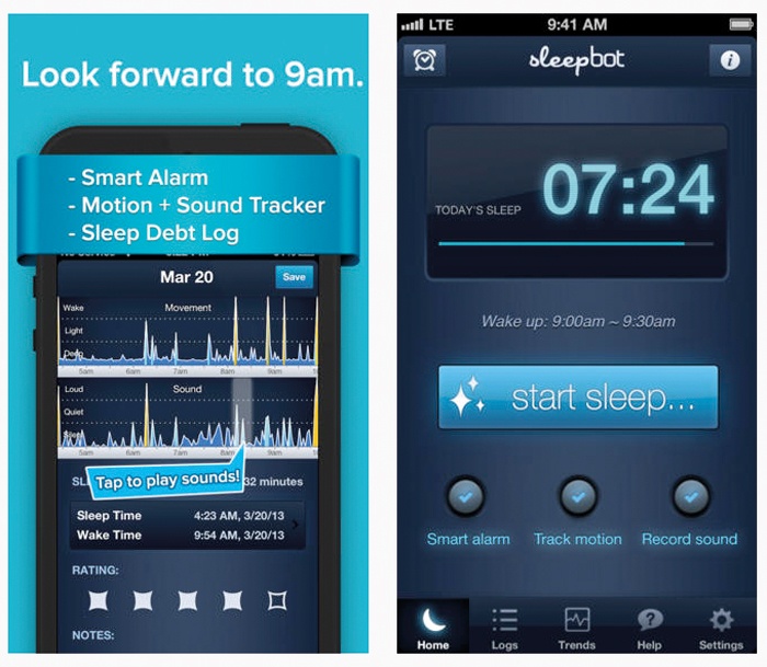 SleepBot إذا كنت ترغب في مراقبة نومك، إليك هذا التطبيق الذي يراقب الحركة والأصوات خلال الليل، مع مقاطع صوتية لمساعدتك على النوم. هناك أيضاً منبّه ذكي يضمن استيقاظك في الوقت المناسب من دون أي تأخير.