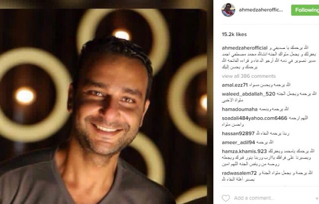 ونشر صورة محمد مصطفى عبر حسابه على تطبيق "انستغرام"، معلقاً: "محمد مصطفي .. مدير التصوير.. في ذمه الله. ارجو الدعاء".