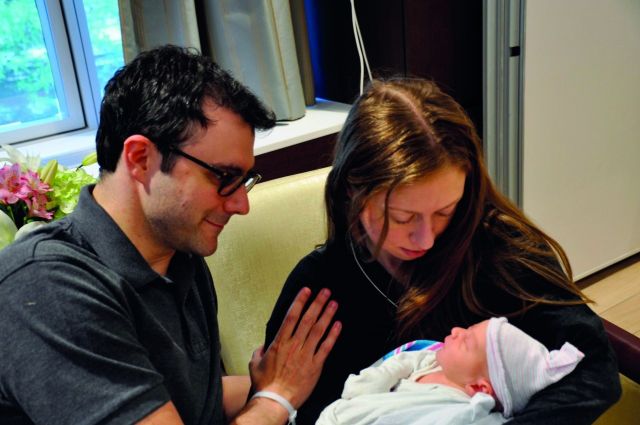 تمت الولادة في مستشفى مدينة نيويورك، وخرجت الأم وطفلها من المستشفى بعد يومين من الولادة. وقد وقفت تشيلسي كلينتون مع زوجها مارك ميزفينسكي وطفلهما الصغير أمام أبواب المستشفى لالتقاط الصور التذكارية، فيما وقف قرب العائلة الصغيرة الجدّان الفخوران بيل وهيلاري كلينتون.