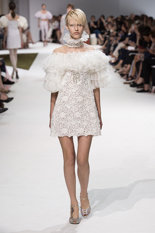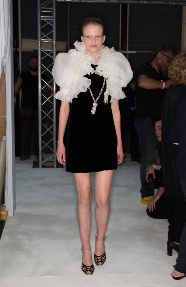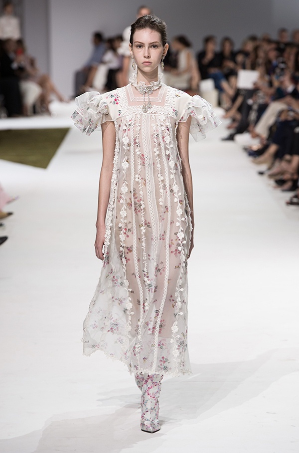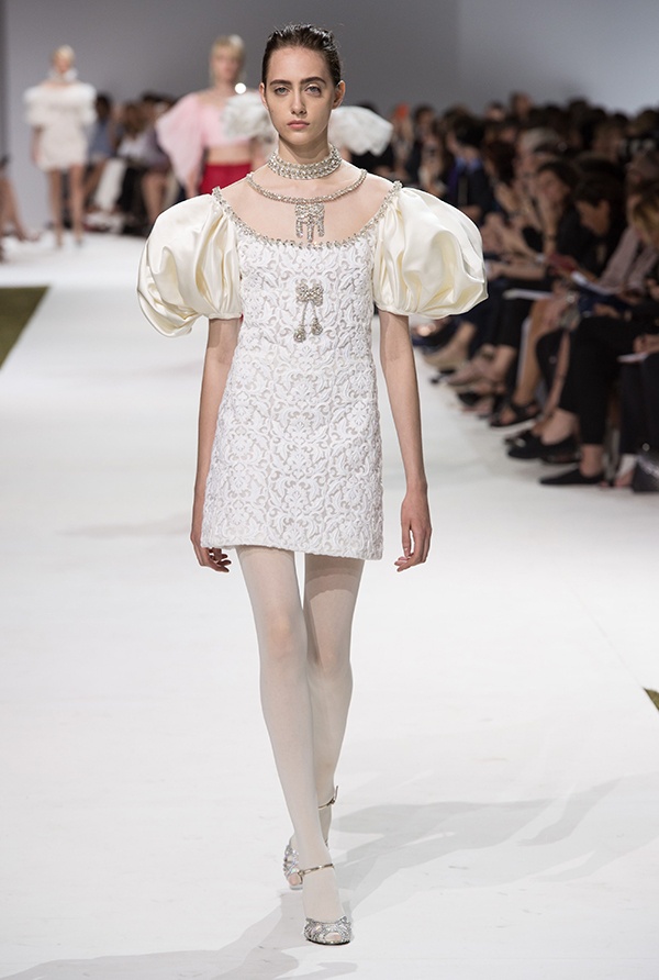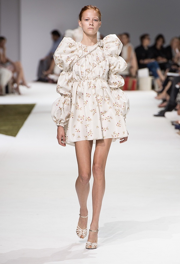 فساتينٌ ضخمة تتسع من تحت منطقة الصدر وأخرى منتفخة من الخلف عُرِفت بالـ Watteau Back وبأكمامٍ منتفخة عكست قروناً وسطى بألوانٍ تراوحت بين الأحمر والفوشيا والبنفسجي والزهر الفاتح والأسود والأبيض.