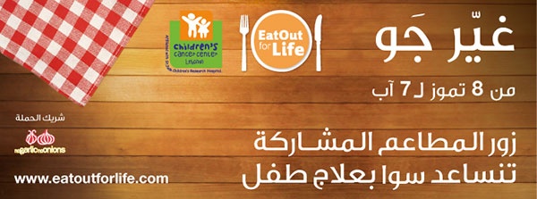 أطلق مركز سرطان الاطفال CCCL حملته السنوية Eat out for life بهدف تمويل علاج 4 اطفال مرضى في المركز. ويمكن الراغبين المساهمة في الحملة عبر تناول وجبة في أحد المطاعم المشاركة فيها من دون تكلفة إضافية حيث يتم اقتطاع نسبة من كل فاتورة كتبرع يعود إلى المركز للمساهمة في إنقاذ حياة طفل مصاب وإعادة الأمل إليه. وتتوافر لائحة المطاعم المشاركة في الحملة على موقع www.eatoutforlife.com . كما يمكن متابعة أخبار الحملة على مواقع التواصل الاجتماعي تحت هاشتاغ #EatOutForLife#