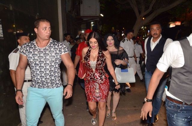 صوفينار حضرت مرتدية فستاناً أحمر قصير ومكشوف الصدر، وكانت محاطة بعدد كبير من أفراد الأمن.