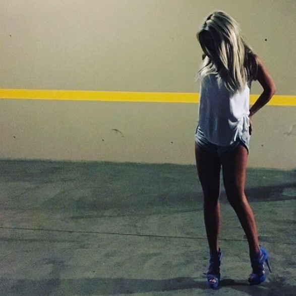 وأطلت بـ Top بيضاء فضفاضة بعض الشيء، وببنطال قصير جداً، في حين انتعلت بقدميها حذاء بكعب عال.