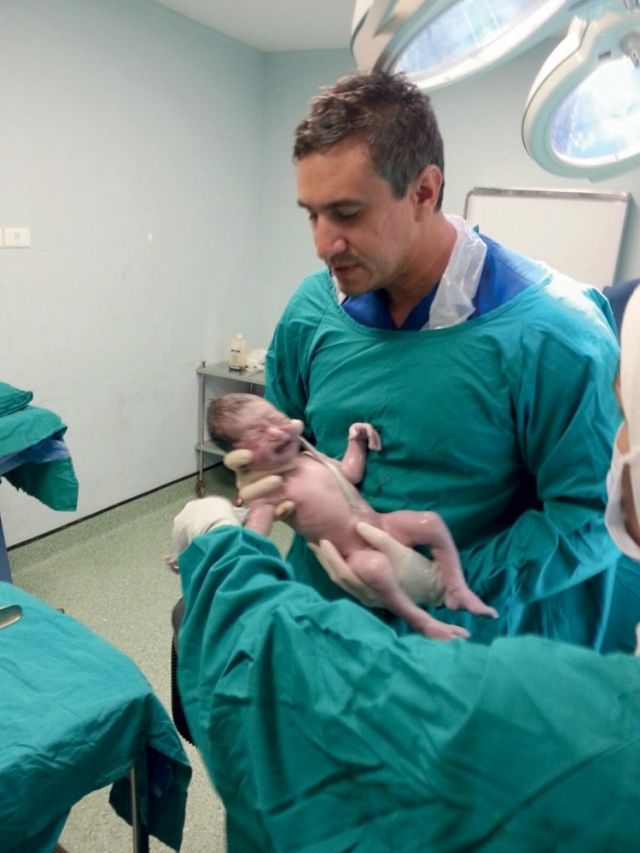 يرى جورج أن الخوف لم يكن من نصيب زوجته وحدها، ويقول: «أُصبت بالرهبة بمجرد أن أمسكت بمشرط الجراحة، وشرعت في تحديد مكان الجرح، ولم أسمح لتلك الرهبة بأن تتملكني لأكثر من ثوانٍ معدودة، فقررت على الفور السيطرة على مشاعري كزوج، وأن أتعامل معها كحالة ولادة عادية غريبة عني، حتى أتمكن من إجراء الولادة بنجاح، وهذا ما حدث بالفعل، وبمجرد أن أخرجت الطفل، وشعرت بأنفاسه الأولى سلّمته الى طبيب الأطفال الموجود معنا في غرفة الولادة ليكشف عليه، ثم اقترحت على أمي أن أتابع طفلي وأن تستكمل هي عملية الولادة، فطمأنت زوجتي، وانتقلت إلى طبيب الأطفال للتأكد من سلامة طفلي، وفي تلك الأثناء كان مايكل يوثّق بالصور كل مراحل الولادة، ورغم ذلك التقطت «سيلفي» مع الطفل وزوجتي فور إفاقتها قبل خروجنا من غرفة الولادة».