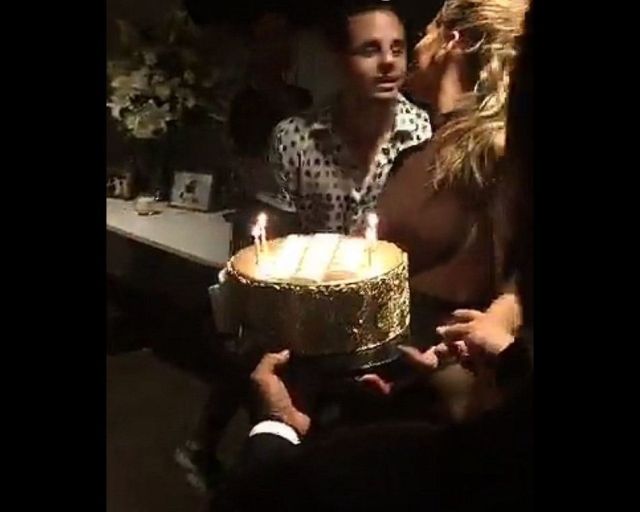وبعد الانتهاء من فقرتها، تفاجأت ج.لو بكلّ من كيم كارداشيان وكالفن هاريس وفرانش مونتاتا مع قالب الحلوى في كواليس الحفل.