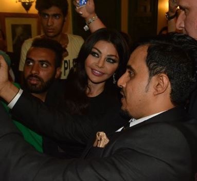 حرصت النجمة اللبنانية هيفاء وهبي على حضور حفل "الملكة"، ما تسبب في تجمع عدد كبير من الجمهور حولها لالتقاط الصور معها، فسارع الحراس الشخصيين على التدخل وإبعاد الناس.