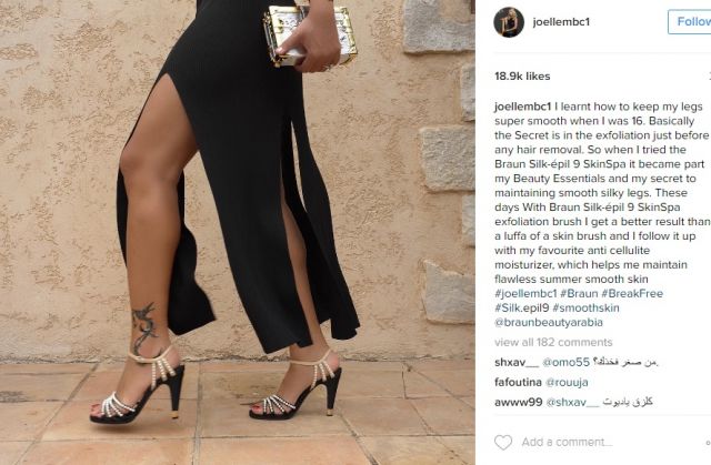 وشاركت خبيرة التجميل الشابة جمهورها سرها عبر حساباتها على شبكات التواصل الإجتماعي، حيث نشرت صورةً لساقيها عبر تطبيق "انستغرام".
