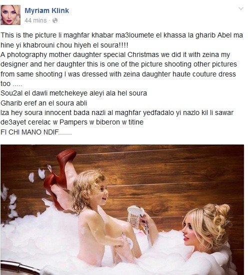 بعد استدعاء عارضة الأزياء اللبنانية ميريام كلينك إلى مخفر حبيش بسبب صورة "مخلة بالآداب"، أكدت استغرابها من الاتصال بها بعد مرور نحو سنة من نشرها الصور.