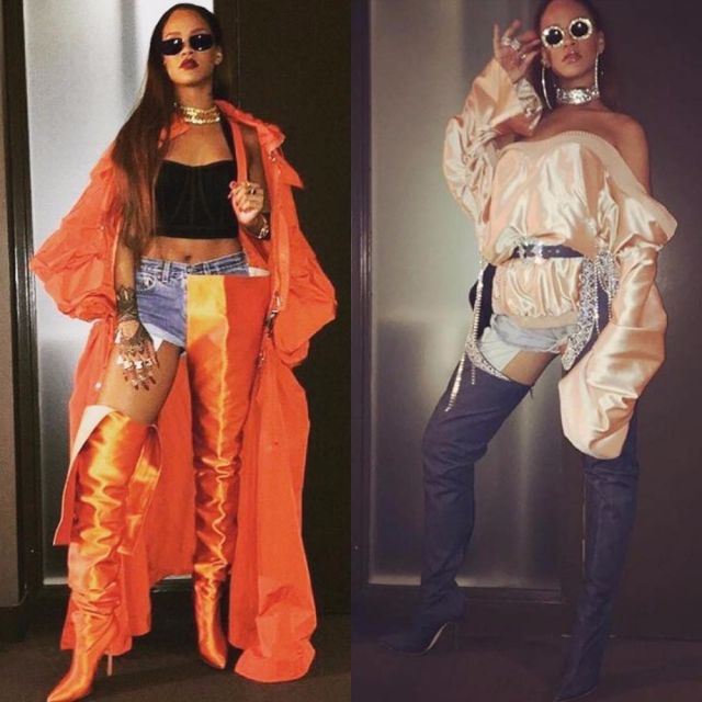 ولطالما اشتهرت ريهانا بعشقها لصيحات الموضة وجرأتها في اختيارها وتنسيقها، فظهرت في الآونة الأخيرة وهي تنتعل الجزم العالية جداً، وتألقت بأحذية تميزت بالحزام الملفوف حول الخصر حملت توقيعها تعاوناً مع العلامة الاسبانية Manolo Blahnik. كذلك ظهرت بأحذية عالية جداً باللون البرتقالي فبدت كأنها تغرق بها. كما انتعلت ريهانا صيحة البابوج الرائجة لربيع وصيف 2016 وأحذية مسطحة بأسلوبها الرياضي مع الشرابات الرياضية لأسلوب جديد ومتفرد.