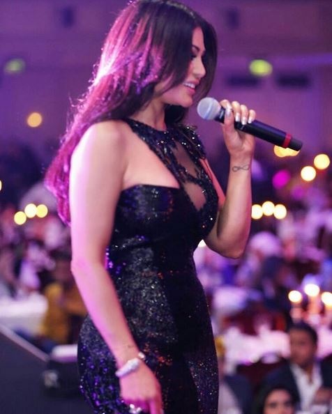 نشرت وهبي مجموعة من الصور على "انستغرام" من حفلها، وكعادتها خطفت الانظار باطلالتها المميزة، حيث أطلت بفستان أسود شفاف وبراق، طويل مع قصة مميزة على الكتف، واكتفت باسدال شعرها الطويل مع ماكياج سموكي ناعم.