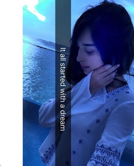ظهرت بوسيل على البحر من دون ماكياج وعلى طبيعتها وبملابس صيفية وكتبت عليها "كل شيء يبدأ بحلم.